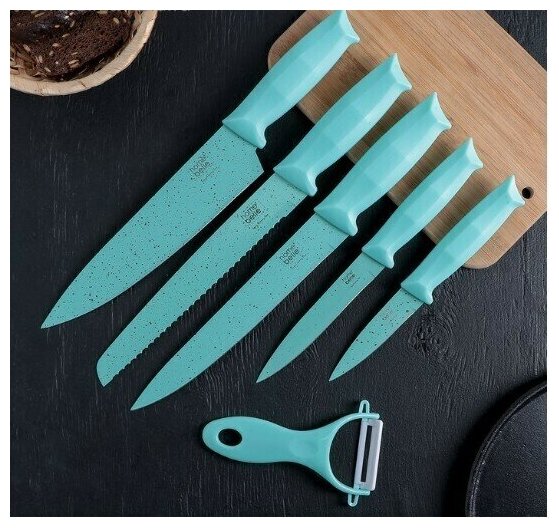 10 цен на Набор «Клауд», 6 предметов: 5 ножей, овощечистка из керамики, цвет бирюзовый