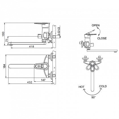 | Угол поворота рукоятки гориз. | 90 градусов |