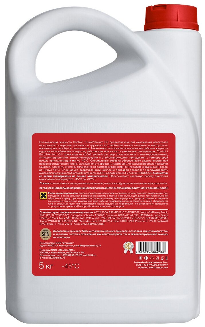 Антифриз Control T Europremium G11 красный 5кг информация: