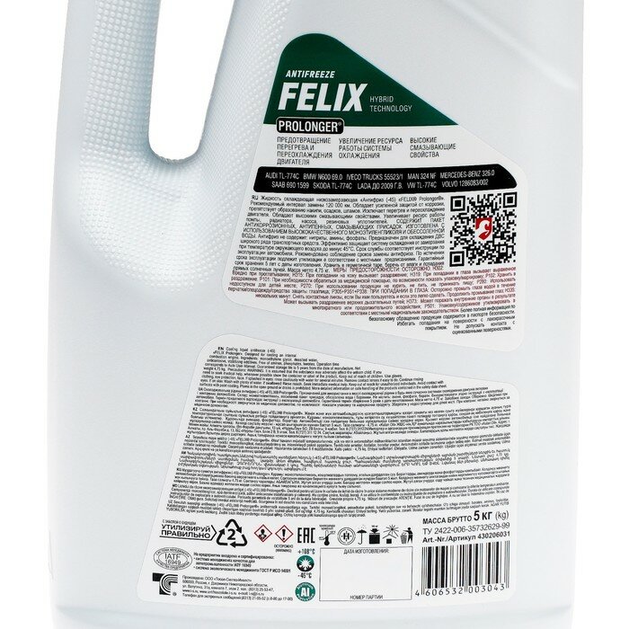 Антифриз Felix Prolonger 5 Кг Зеленый -40С Felix арт. 430206031