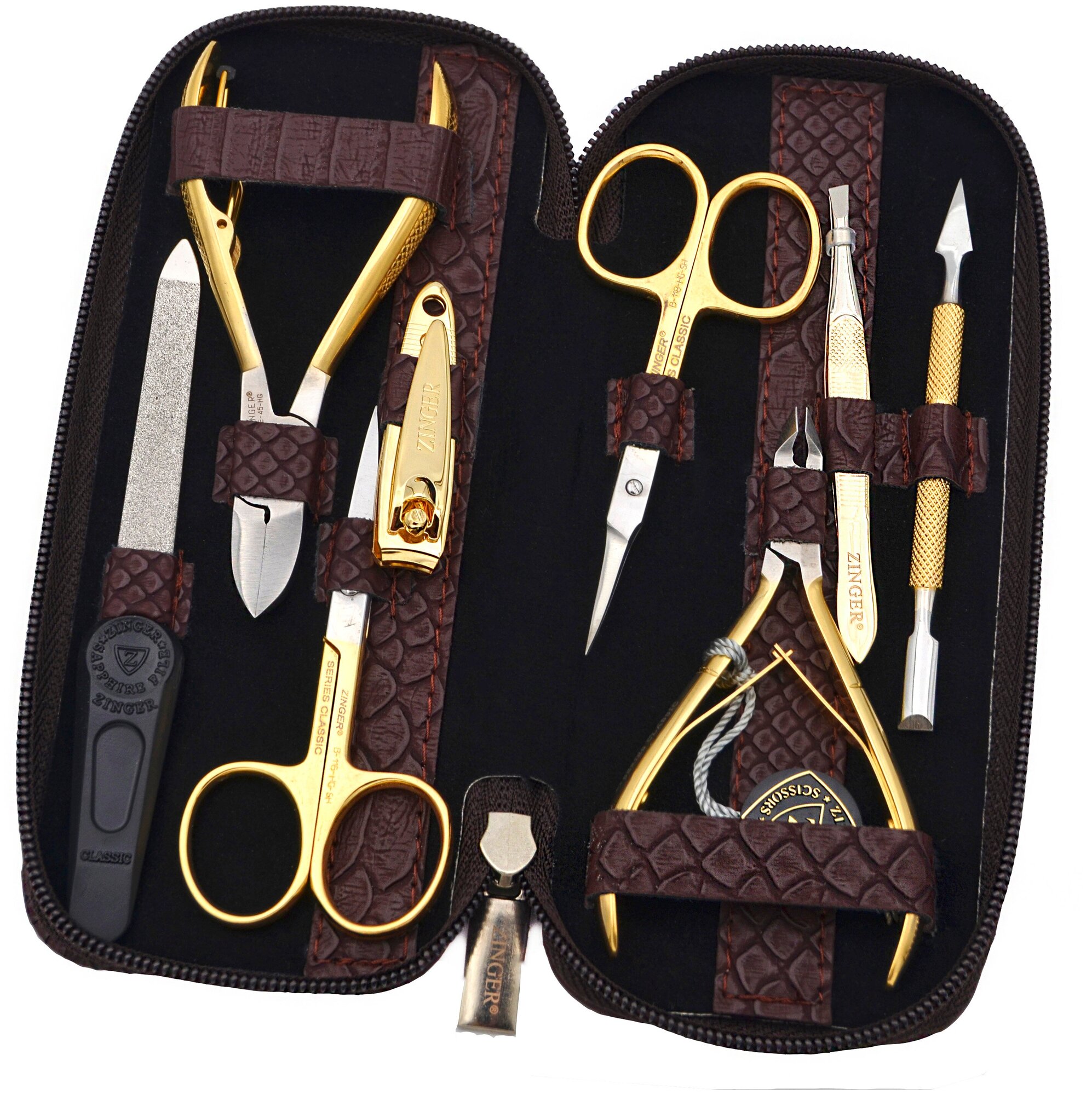 10 цен на Маникюрный набор Zinger 7106 G, 8 предметов, позолоченный/красно-коричневый