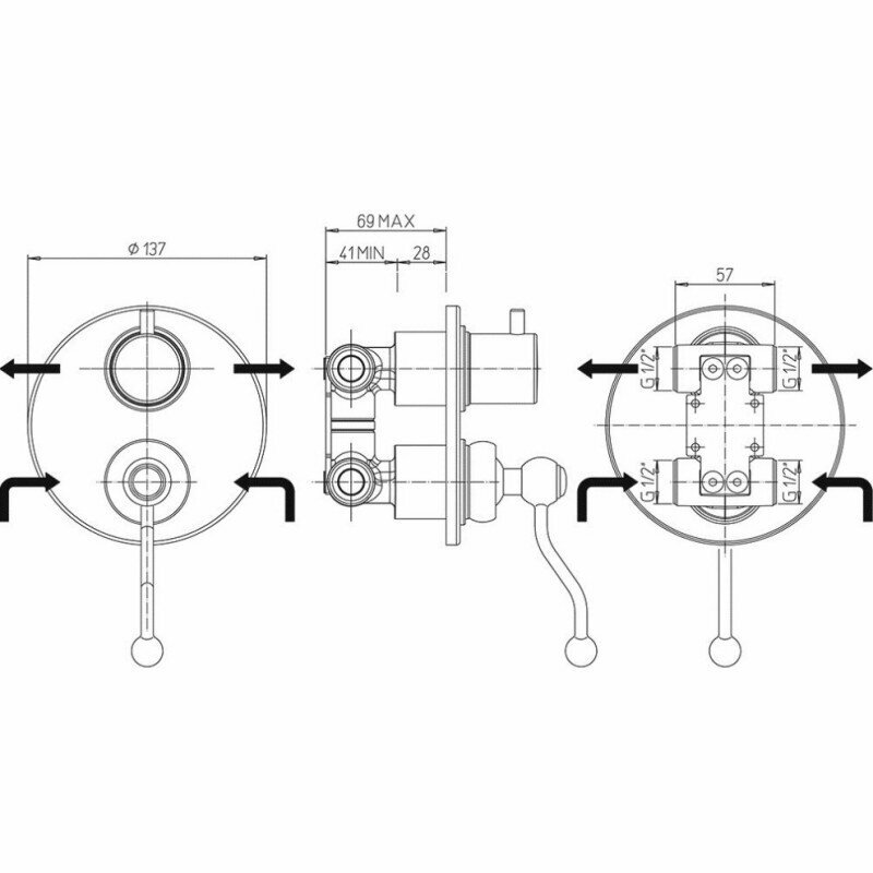 Смеситель встраиваемый для душа с дивертором Paini Duomo 88CR6911, скрытая часть в комплекте