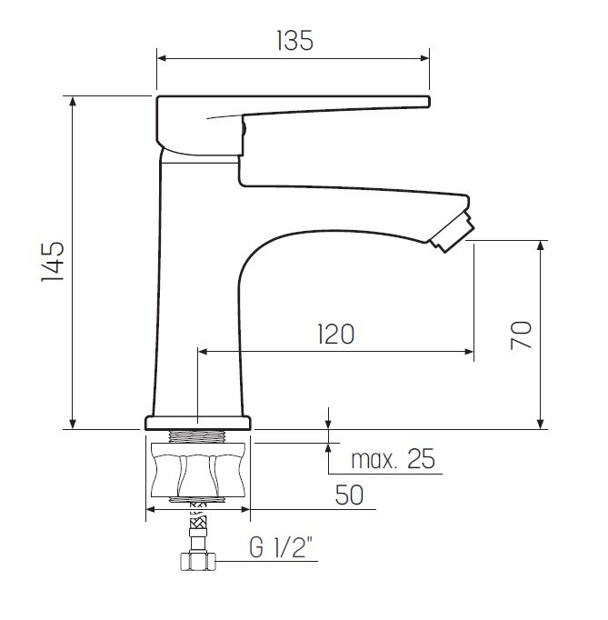 Смеситель для умывальника РМС SUS124-001F-3 нержавеющая сталь