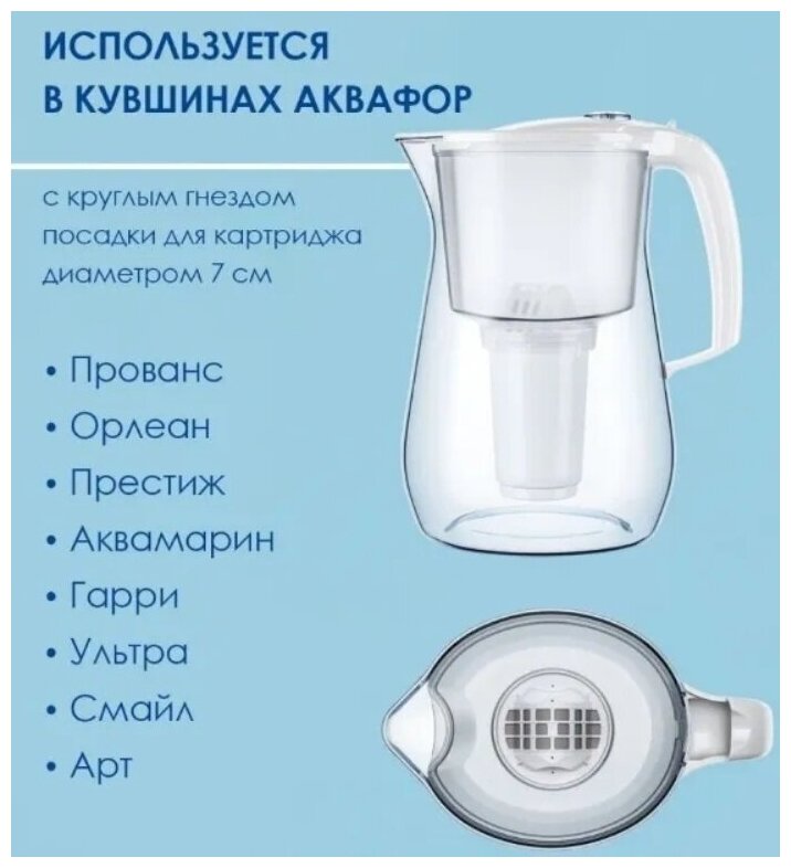 | Дополнительная информация | для кувшинов Аквафор c круглым гнездом посадки картриджа диаметром 7 см |
