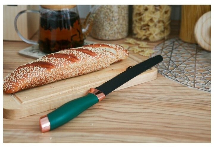 Нож кухонный Доляна "Эсмиральда", хлебный, лезвие 19,5 см, зеленый