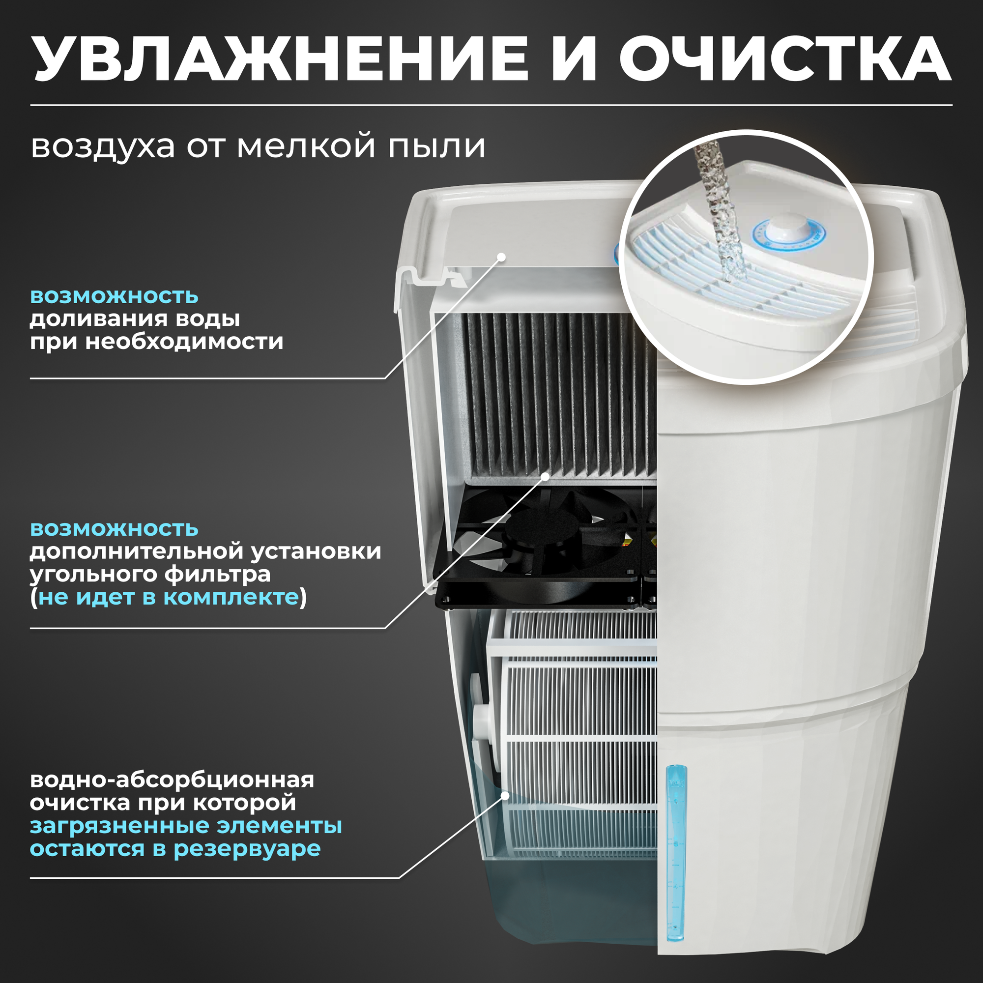 Увлажнитель очиститель воздуха "Fanline Aqua VE400" с ионизатором и двумя УФ лампами с производительностью 510 гр/ч