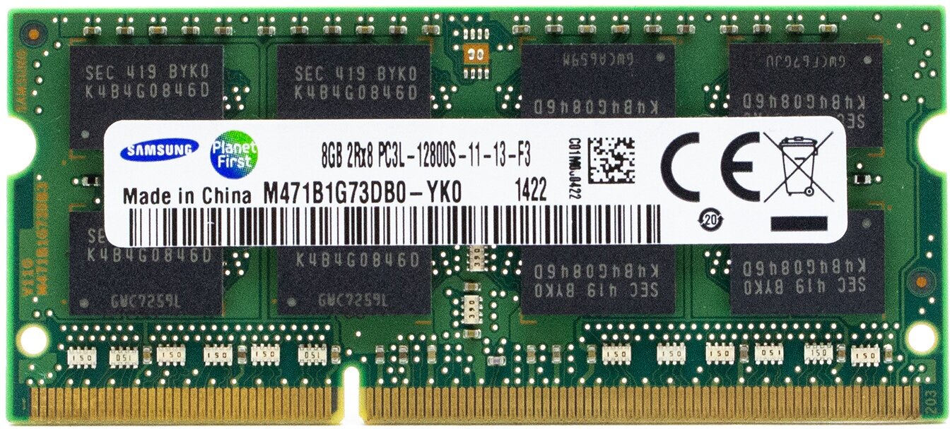 Оперативная память Samsung 8 ГБ DDR3L 1600 МГц SODIMM CL11 M471B1G73DB0-YK0 информация: