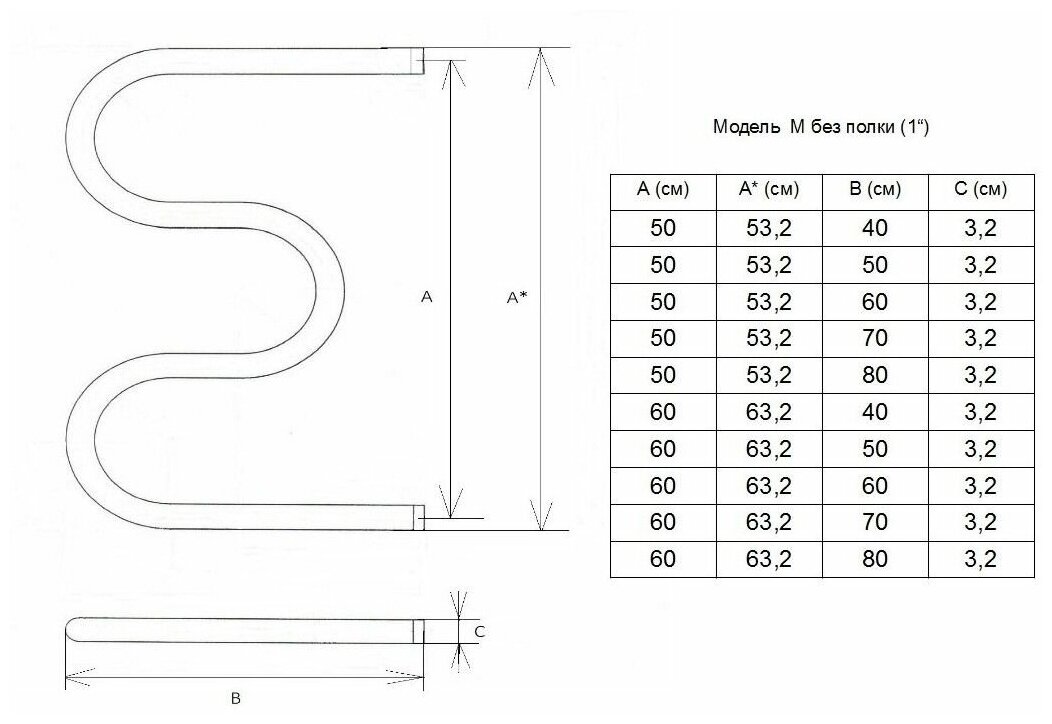 Полотенцесушитель Двин M 60/60 1" Без полки Водяной К0, Полированный информация: