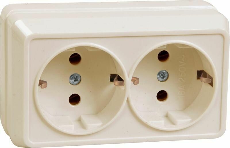 10 цен на Розетка 2-м ОП Октава РС22-3-ОКм 16А IP20 с заземл. крем. IEK ERO21-K33-16-DC