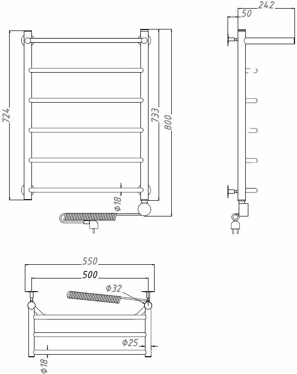 Электрический полотенцесушитель Тругор Пэк сп 6 ВГП 80x50 универсальный