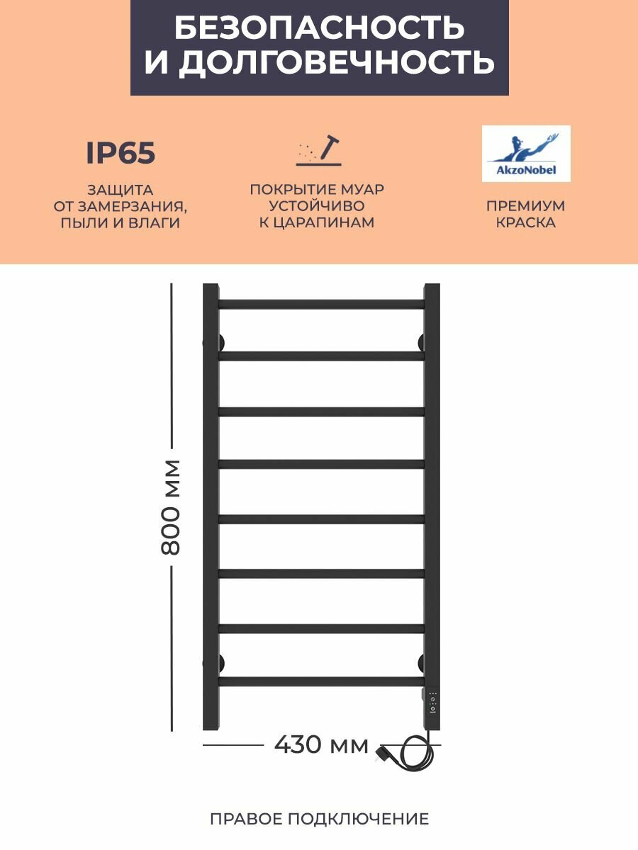 Полотенцесушитель электрический Маргроид В10 30х80, таймер, черный матовый