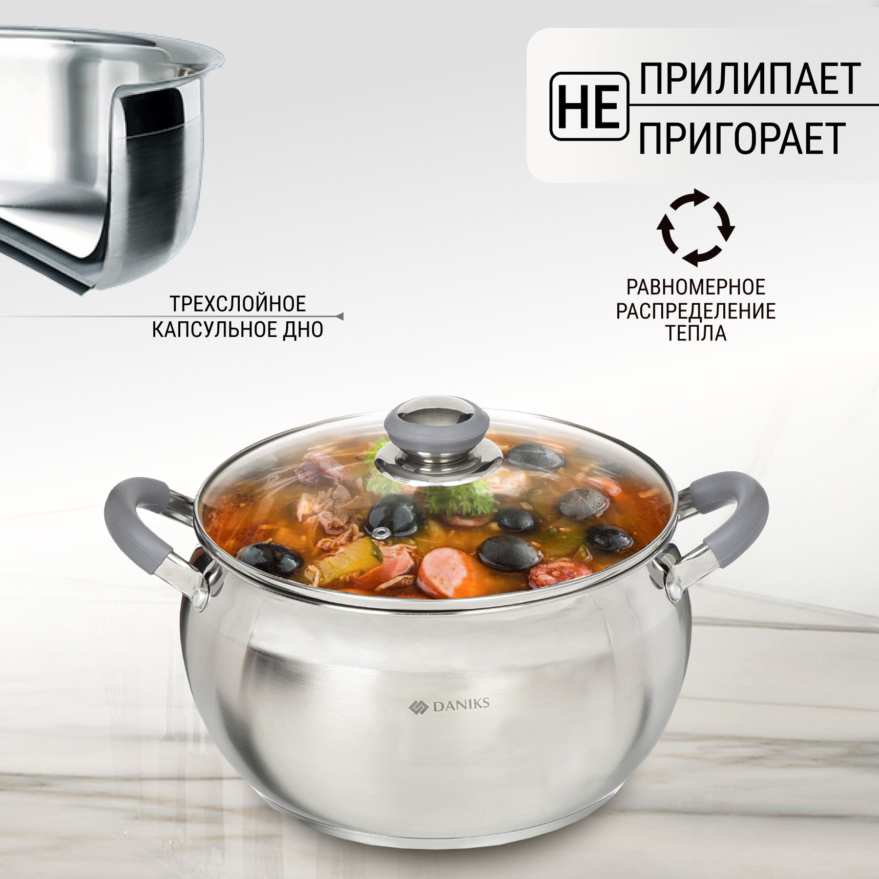 10 цен на Кастрюля нерж, 6.5 л, с крыш, Daniks, Модерн, SD-24N, индукц