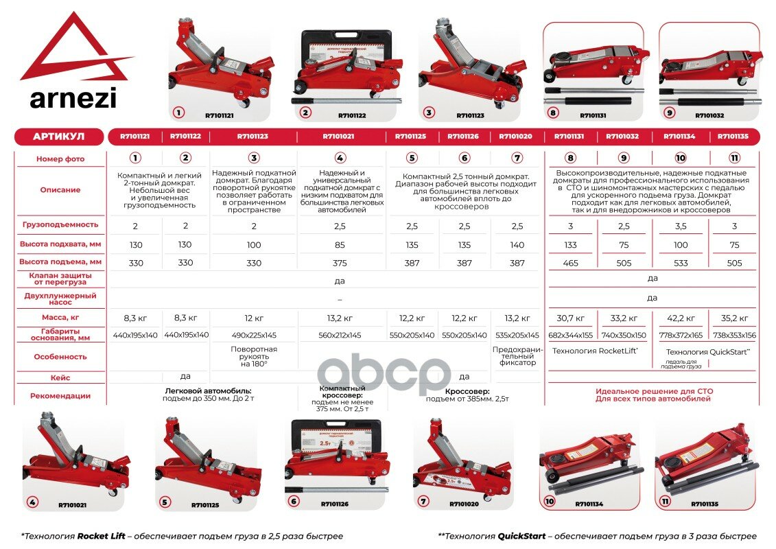 10 цен на Домкрат Гидравлический Подкатной 2,5Т 75-505 Мм Двухпоршневой, Низкий Профиль Arnezi R7101032 ARNEZI арт. R7101032