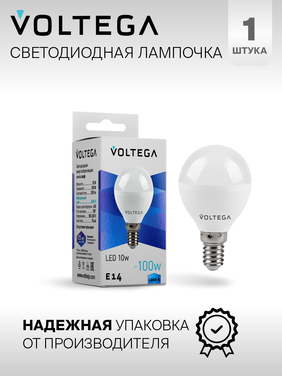 Лампочка светодиодная Voltega Simple LED 037 E14 10W 4000 К информация:
