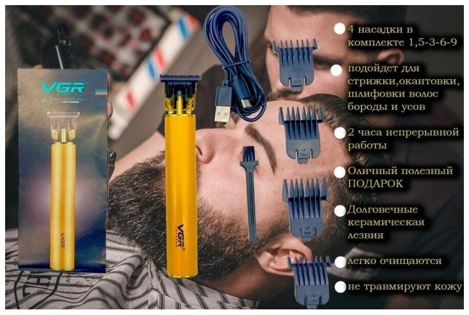 Триммер для бороды и усов VGR MARKA VGR V-261, золотой