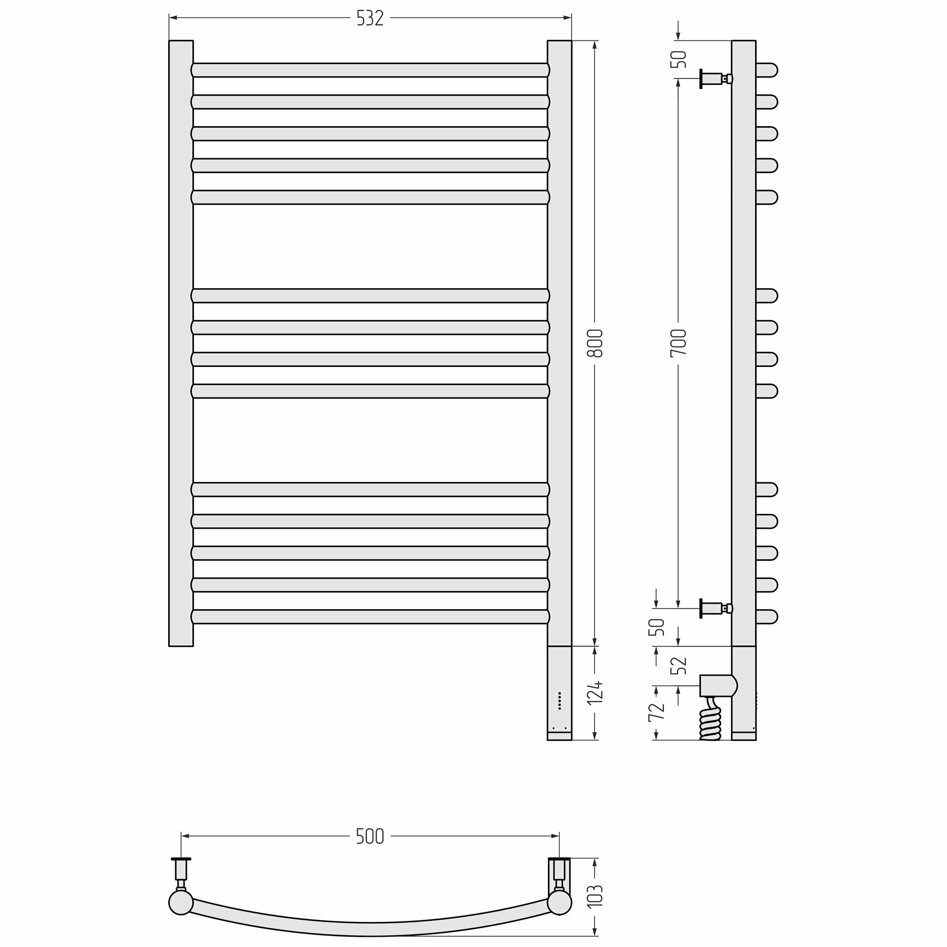 TERMINUS Полотенцесушитель электрический Terminus Хендрикс П6 500x596, ТЭН HT-1 300W, левый/правый