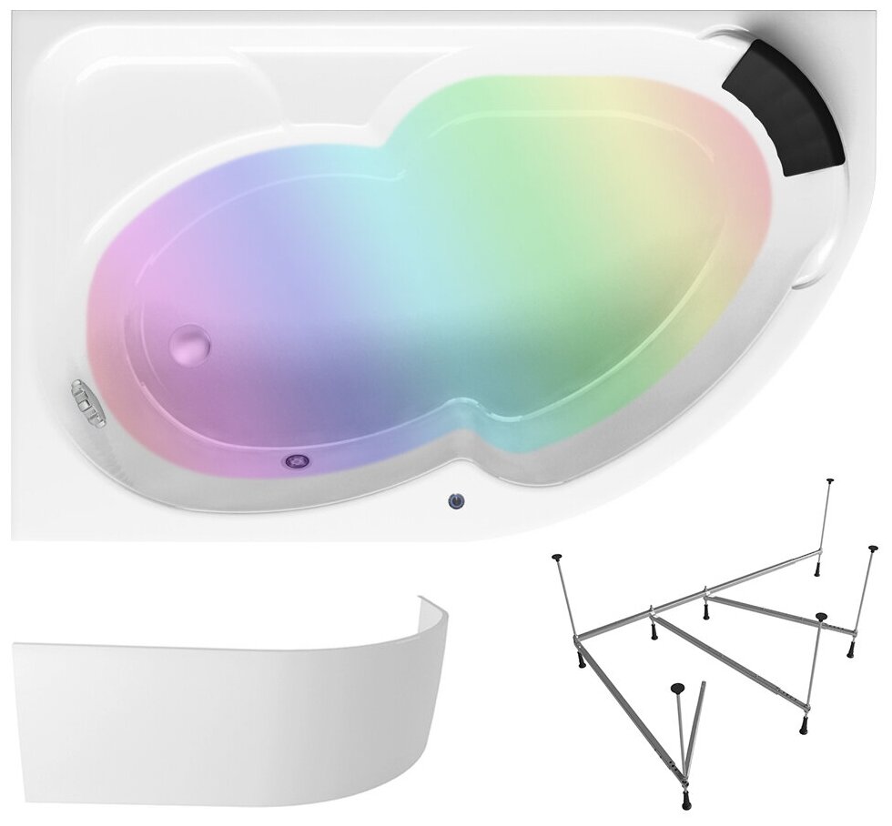 10 цен на Комплект 5 в 1 Lavinia Boho Grance Hill S4-370317PL, акриловая ванна 170x105 см (левый разворот), каркас, подголовник, лицевой экран, хромотерапия