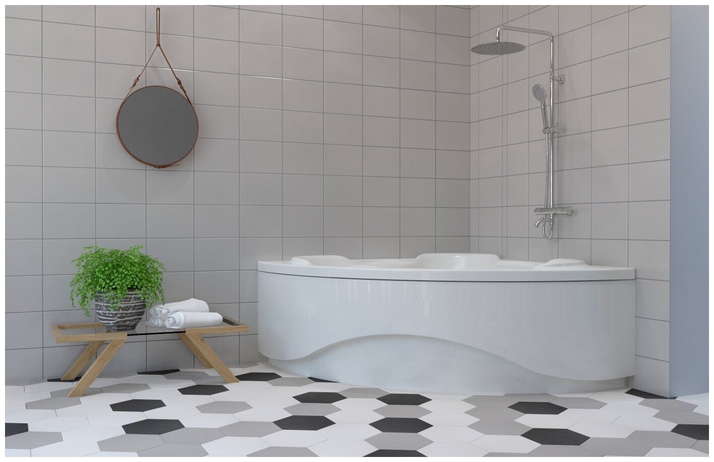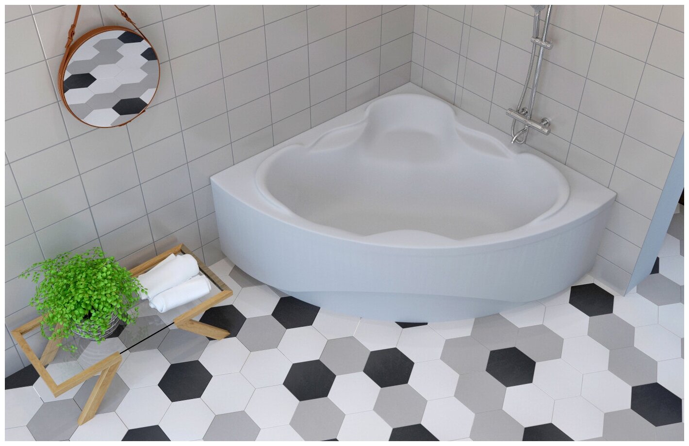 Отзывы на Комплект 4 в 1 Lavinia Boho Elegant S3-3705015P, акриловая ванна 150x150 см, каркас, подголовник 2 штуки, хромотерапия