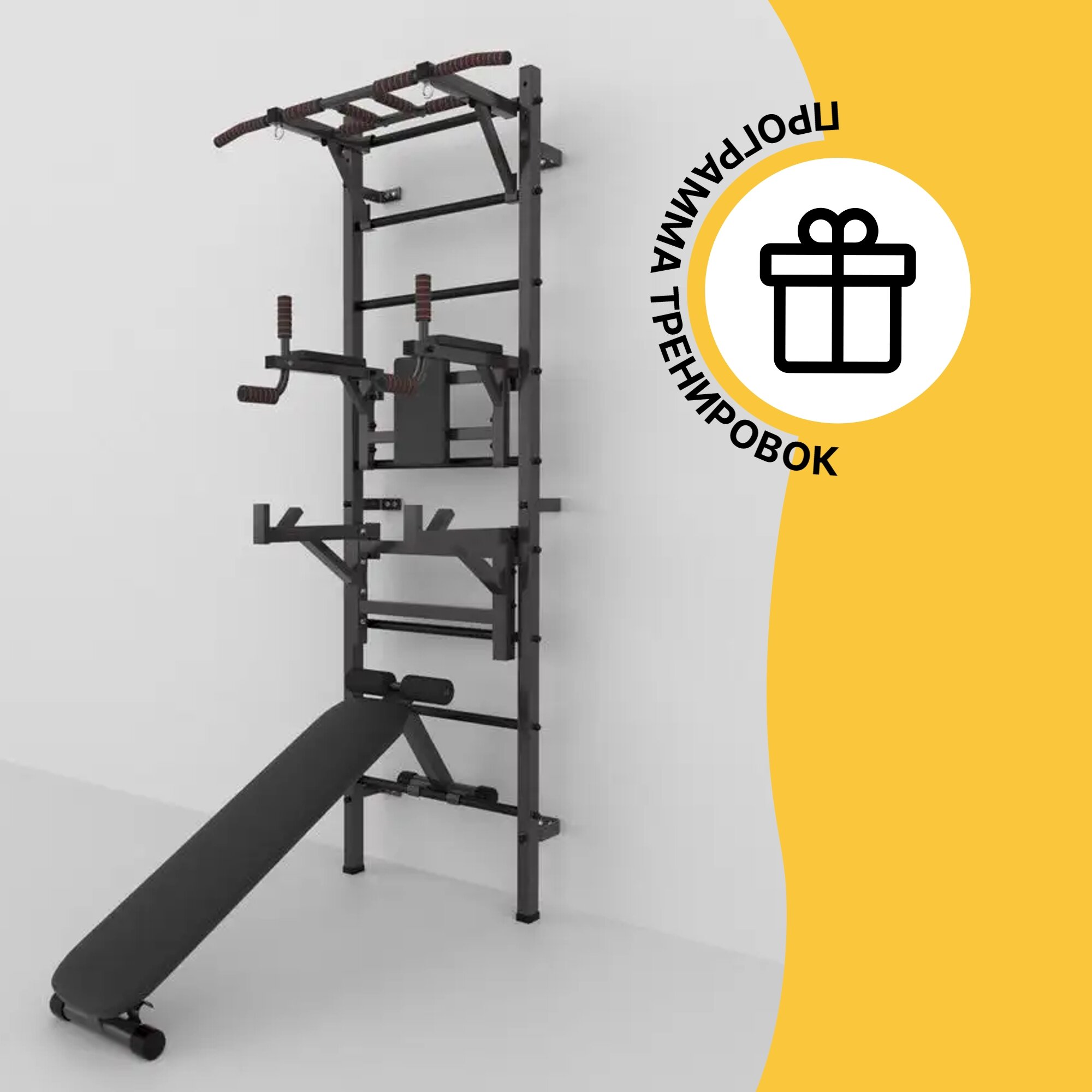 10 цен на Шведская стенка + турник 3 хвата + брусья + стойка + скамья (Черная)