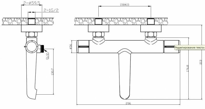 Смеситель на раковину настенный Эверест B46-350 с круглым поворотным изливом, кран-буксы 1/2", хром