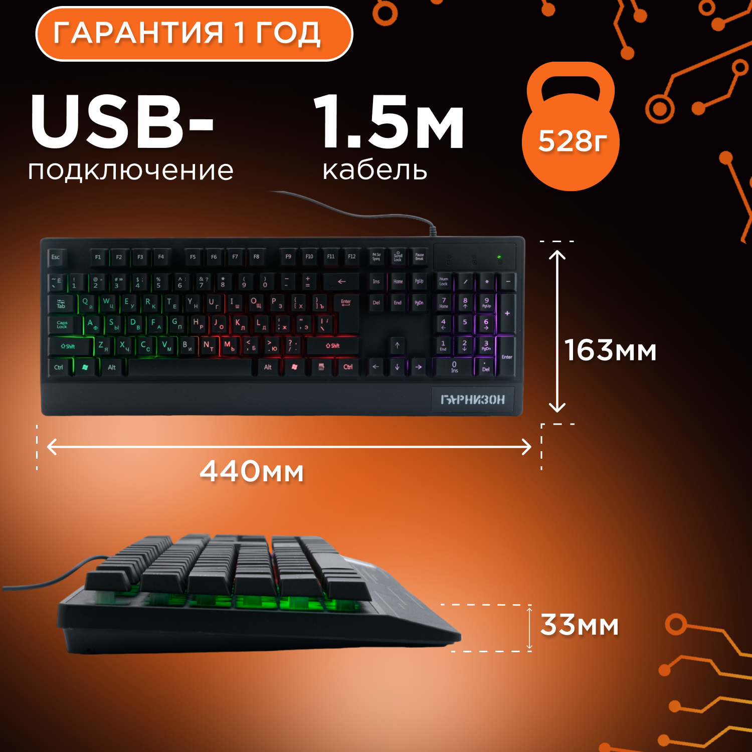 Игровая клавиатура Гарнизон GK-210G с подсветкой Rainbow информация: