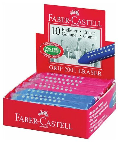 10 цен на Faber-Castell Ластик "Grip 2001", трехгранный, 90*15*15мм, красный/синий