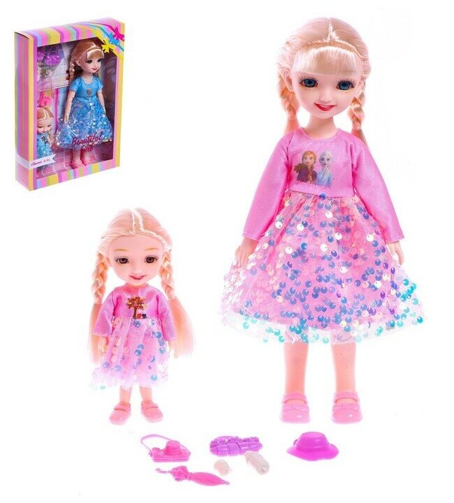 Кукла модная шарнирная "Анечка", с сестрёнкой, в платье, с аксессуарами, цвет розовый информация: