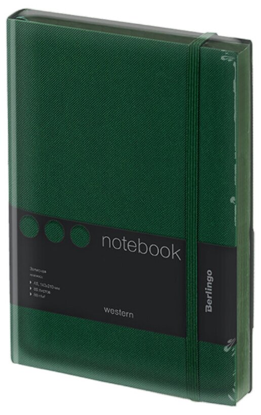 Записная книжка Berlingo "Western", А5, 80 л, кожзам, черный срез, с резинкой, зеленый