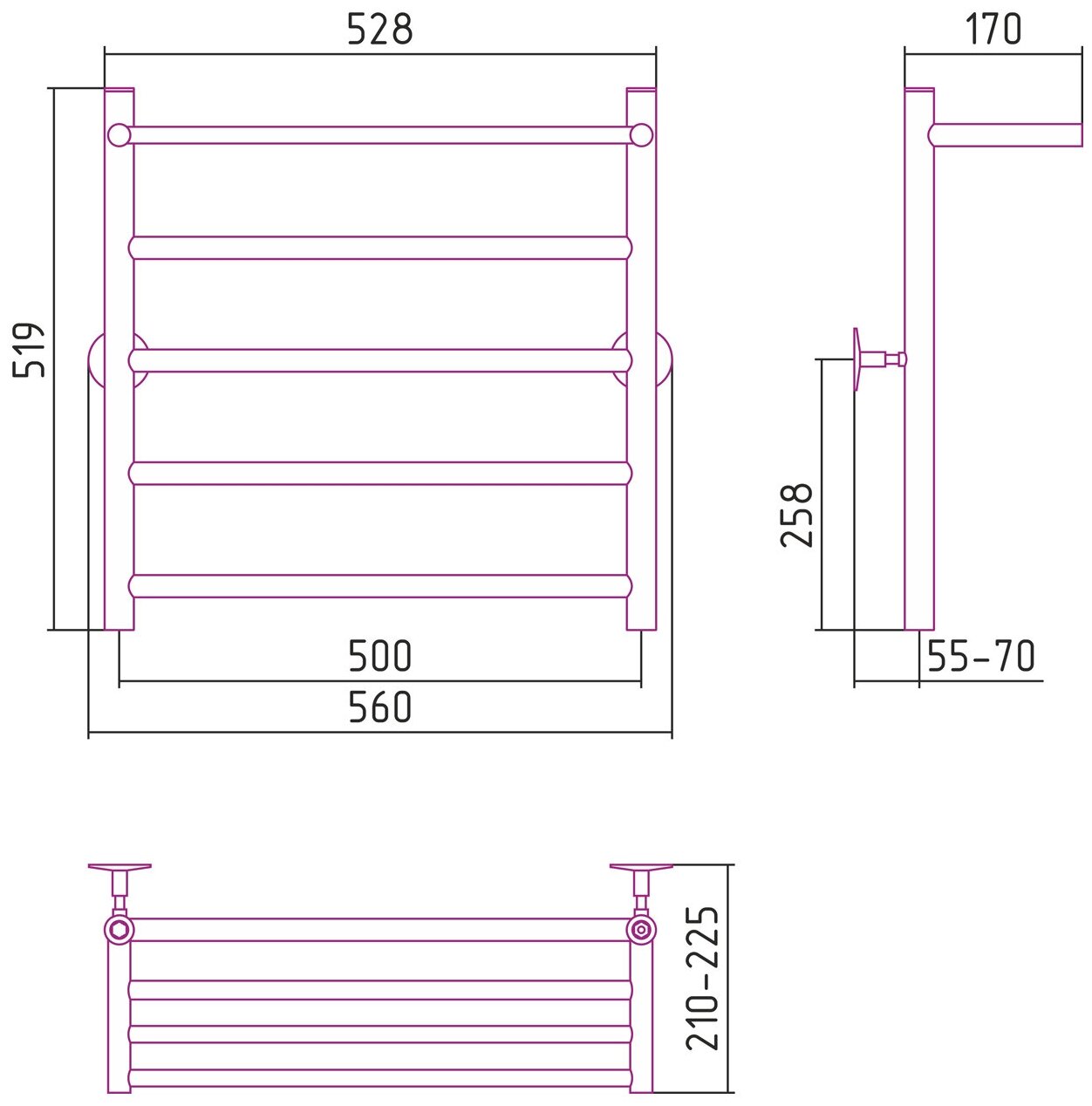 Полотенцесушитель водяной стилье "Универсал-54" 600х500 (Полка + 4) П 21 информация: