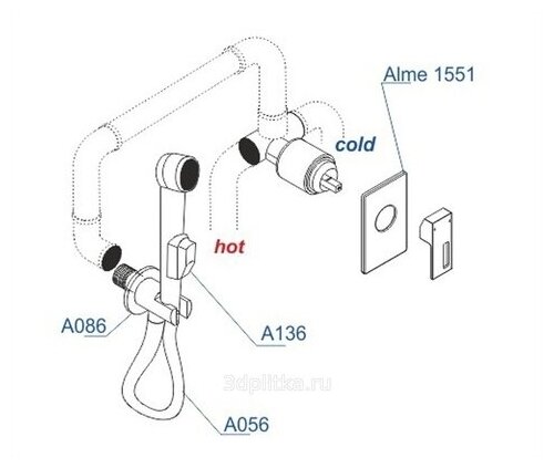 A15156 Встраиваемый комплект для биде со шлангом 100 см