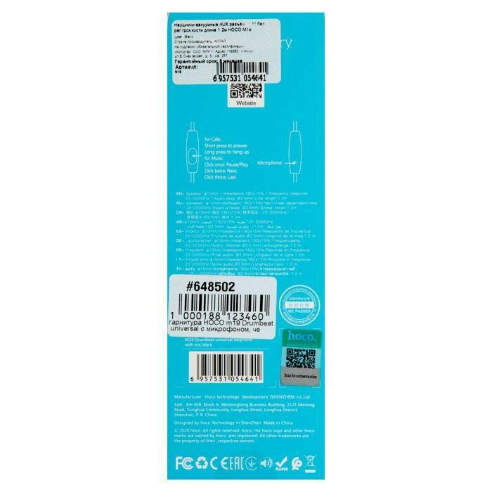 Гарнитура HOCO m19 Drumbeat universal с микрофоно м, черный информация:
