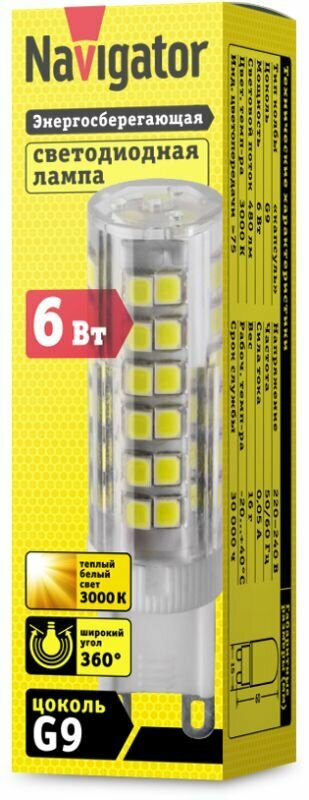 10 цен на Лампа светодиодная 71 268 NLL-P-G9-6-230-3K 6Вт капсульная 3000К тепл. бел. G9 480лм 230В Navigator 71268