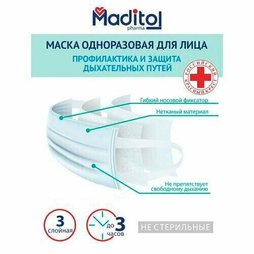 10 цен на MADITOL Маска для лица одноразовая стандартная резинка К 50шт