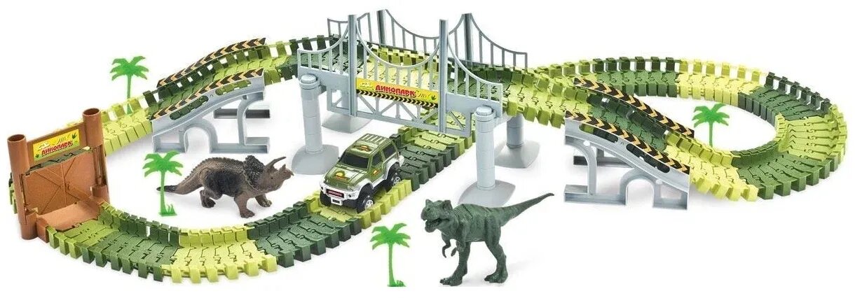 | Комплектация | деталь для трека, мини мост, динозавры, пальмы, машинка, ворота |