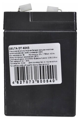 Аккумулятор 4V - 4,5 А/ч "Delta DT" (DT 4045) информация: