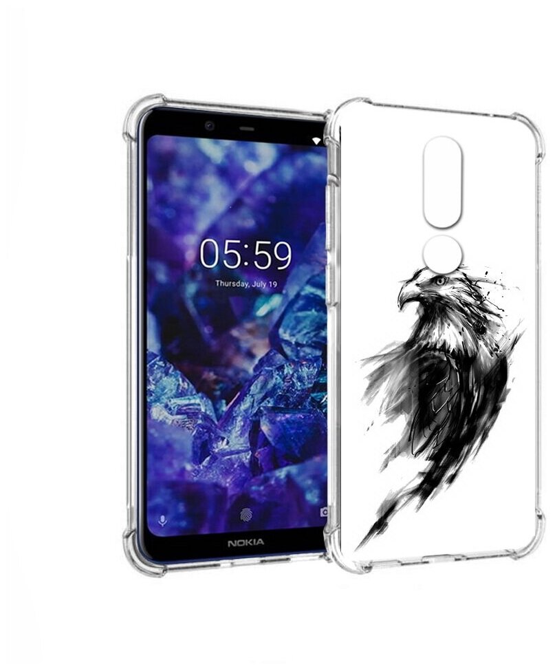 Чехол задняя-панель-накладка-бампер MyPads чб птица для Nokia 5.1 Plus/Nokia X5 противоударный информация: