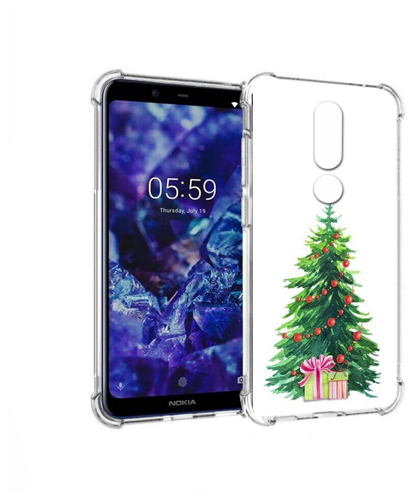 10 цен на Чехол задняя-панель-накладка-бампер MyPads Елка новогодняя с подарками акварель для Nokia 5.1 Plus/Nokia X5 противоударный