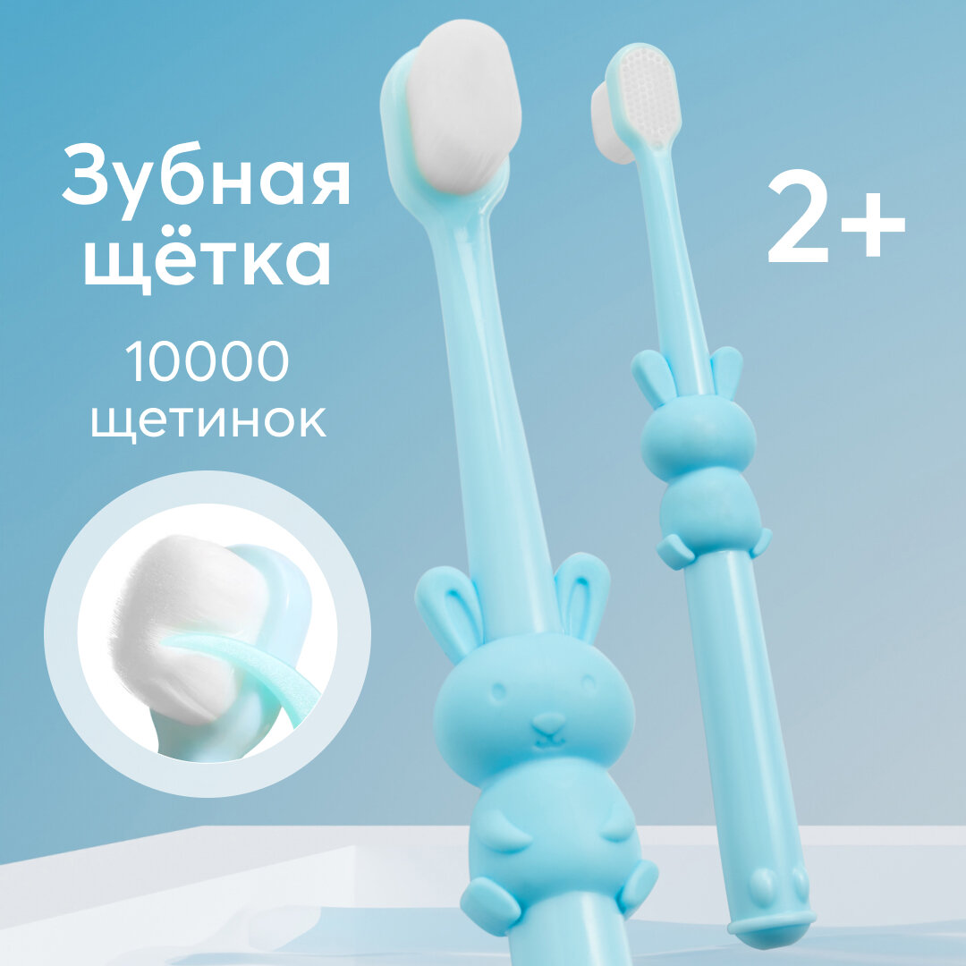 Щетка зубная детская Happy Baby для первых зубов, 24m+, заяц голубой 512 ₽