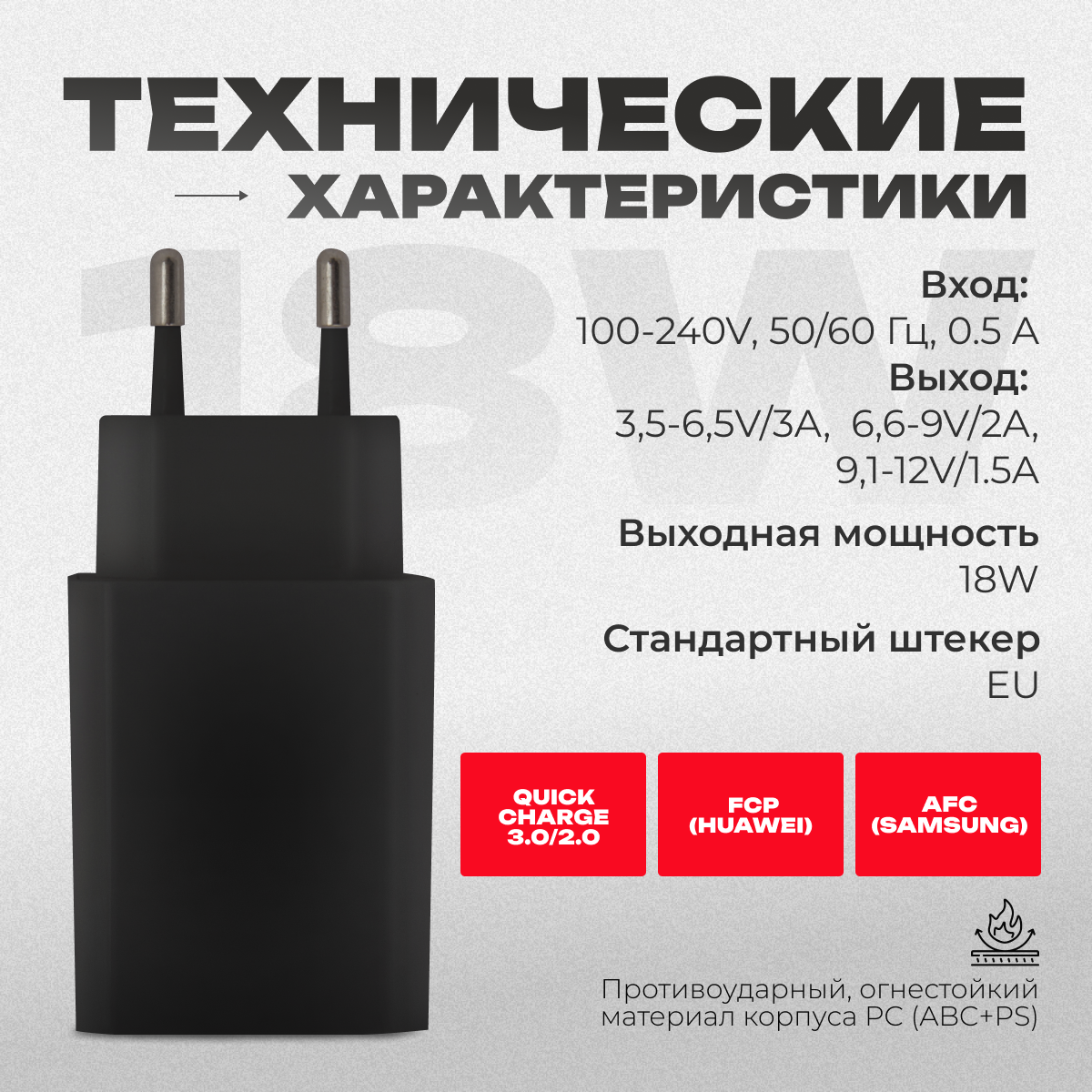 | Тип | сетевое зарядное устройство / Быстрая зарядка для телефона (18W/QC3.0A) / быстрое зарядное устройство для телефона / Сетевой блок питания |