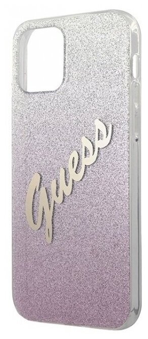 Guess для iPhone 12 mini (5.4) чехол PC/TPU Script logo Hard Gradient Glitter/Pink информация: