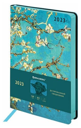 Ежедневник датированный Brauberg 2023 а5 138x213 мм под кожу, гибкий цветущий миндаль (114124)