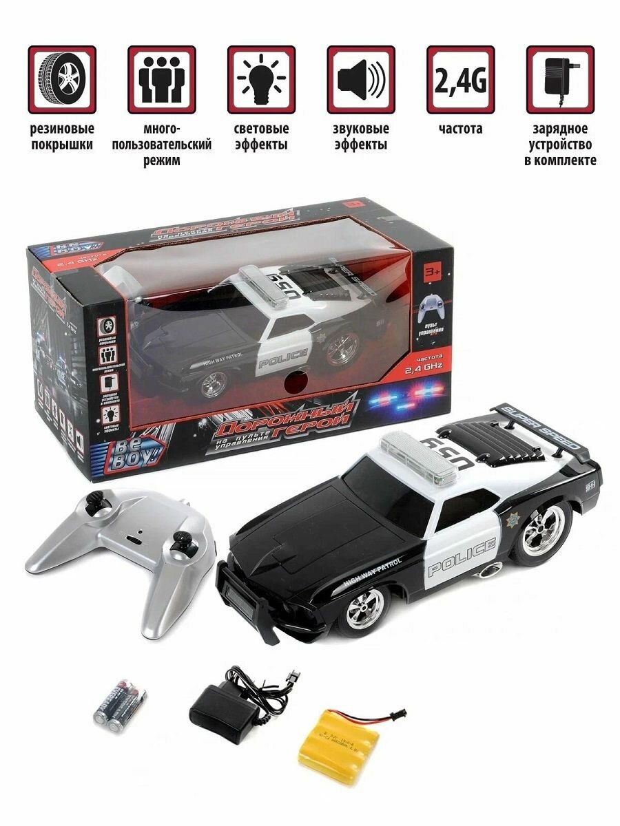 Машинка р/у BeBoy "Полиция", пульт управления, зарядное устройство, аккумулятор, звук и свет, в коробке (IT105242)