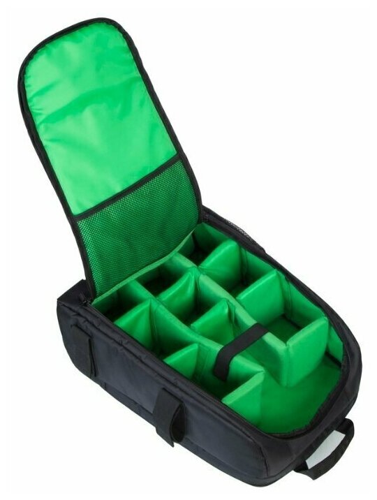 | Дополнительная информация | • Рюкзак для зеркальной фотокамеры с отделением для 15.6 ноутбука. • Зеленая внутренняя подкладка из высококачественного нейлона. • Рюкзак выполнен из высококачественного полиэстера, имеет утолщенные стенки для лучшей защиты камеры от случайных ударов и царапин, а также от пыли и влаги. • Основное отделение закрывается на двойную застежку «молнию» и обеспечивает быстрый доступ к фотокамере и объективам. • Дополнительно возможно разместить 4 объектива, вспышку, бинокль с помощью системы внутренних передвижных перегородок. • Внешний боковой карман для аксессуаров, ёмкостей с водой. • Боковые петли можно использовать для переноски штатива. • Мягкая спинка и уплотненные регулируемые наплечные ремни для длительного комфортного ношения рюкзака. • Ручка для переноски в руках. Внутреннее отделение для камеры / Внутреннее отделение для ноутбука / Внешний размеры (мм): 280x420x110 / 275x405x40 / 300x430x155 |
