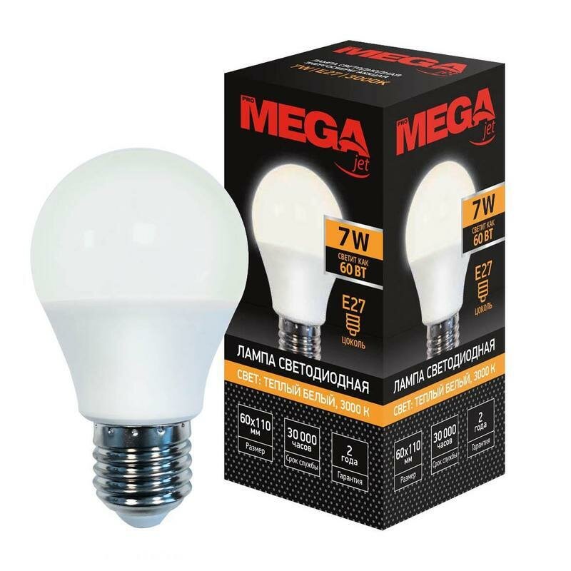 Лампа светодиодная Mega E27 7W 3000K груша информация: