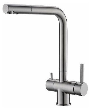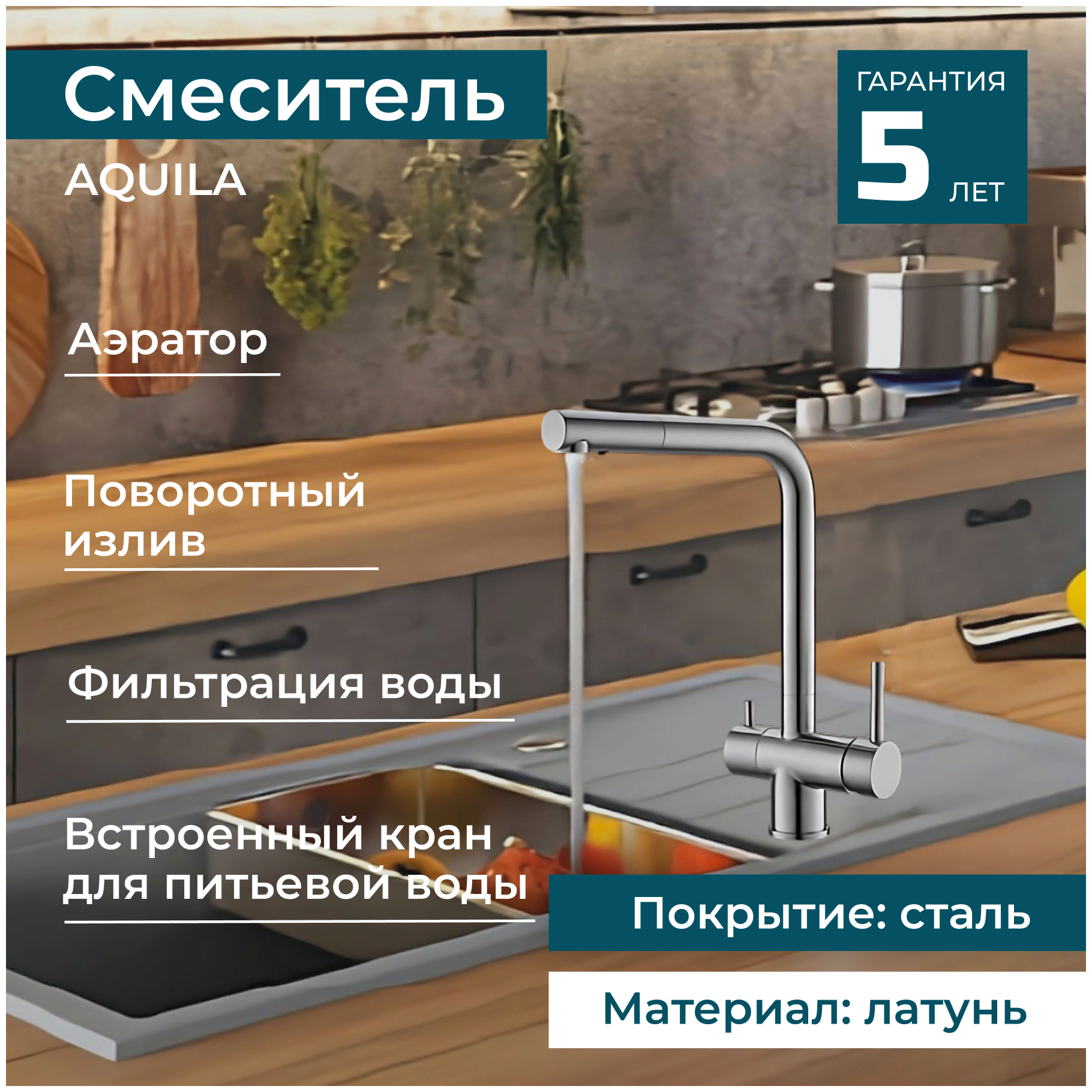 Смеситель для кухни под фильтр и краном для питьевой воды с поворотным изливом ALVEUS AQUILA SAT матовый хром, двухканальный смеситель для кухни, сантехника на кухню, кран кухонный для раковины