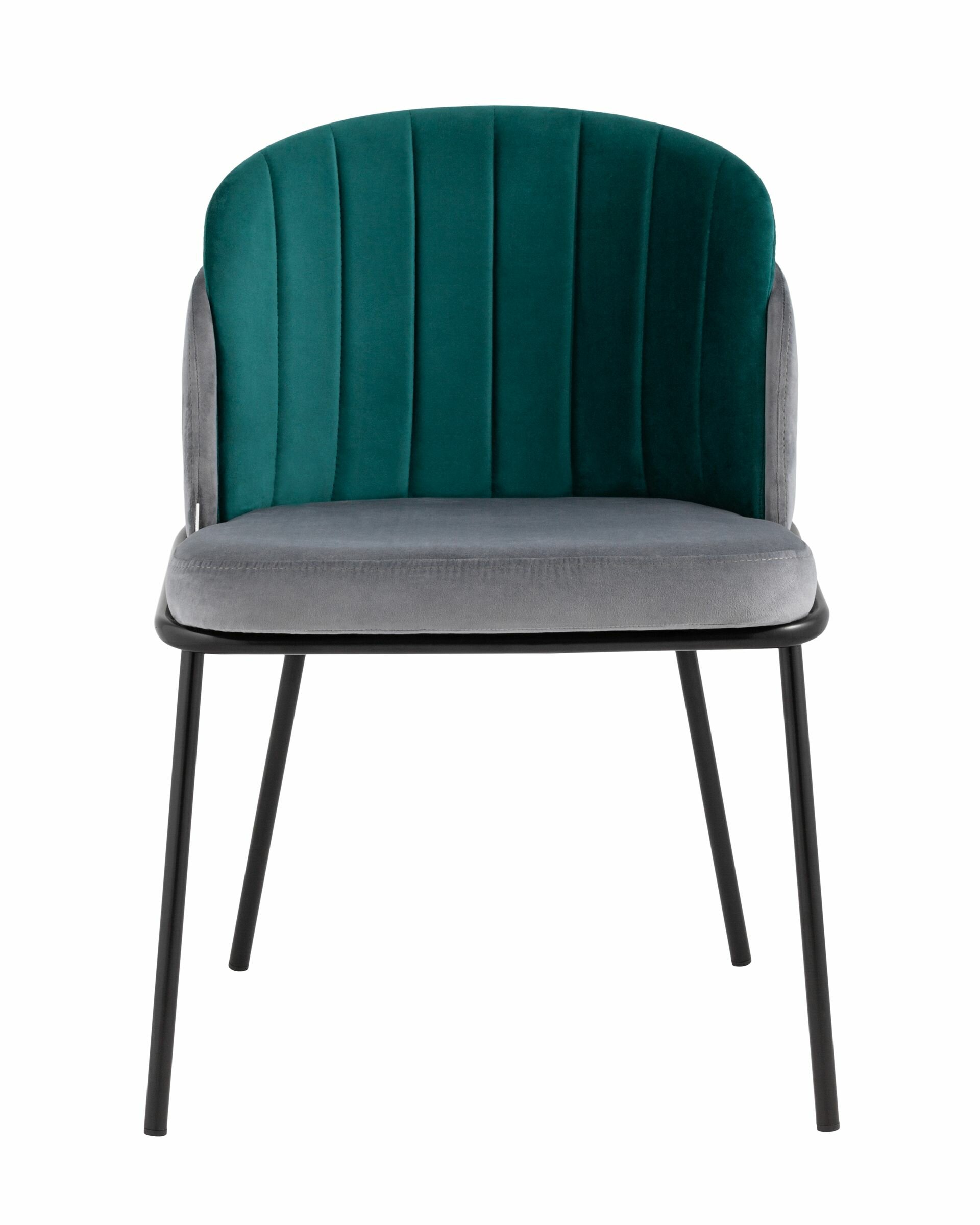 Стул Stool Group Стул Дабл велюр серый с изумрудной вставкой, для кухни столовой гостиной дизайнерские дома без подлокотников со спинкой 81,5*51,5*56см 81,5см 51,5см 56см металл 6 990 ₽