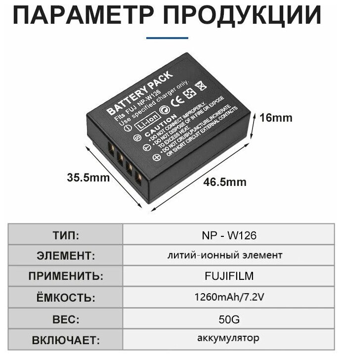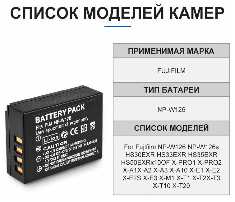 Аккумулятор ABC для камеры FujiFilm серий NP-W.., X.. 7.4В 1260mAh информация: