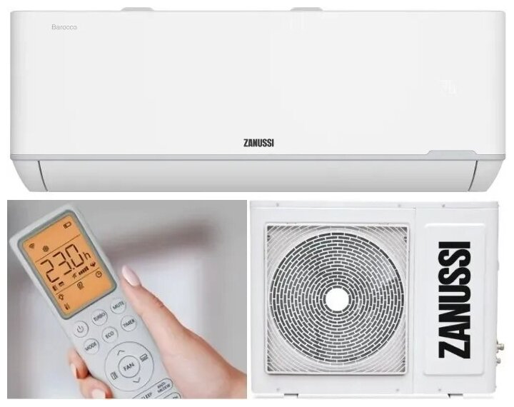 Сплит-система ZANUSSI ZACS-24 HB/N1, внешний и внутренний блок, площадь помещения до 70 м2, 2 места