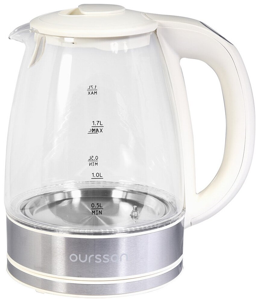 Электрический стеклянный чайник Oursson "KE1744GD/IV", 1.7л, 2200Вт, бежевый