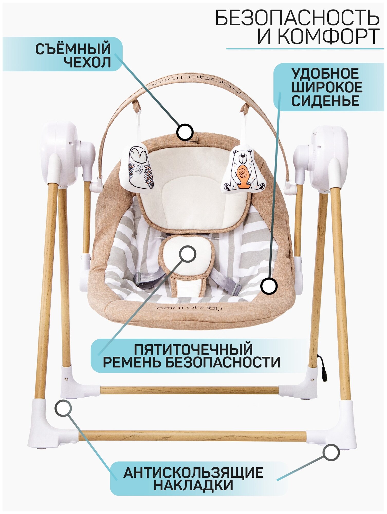 Электрокачели Amarobaby WOODEN SWING бежевый AB20-22WOOD/03 информация: